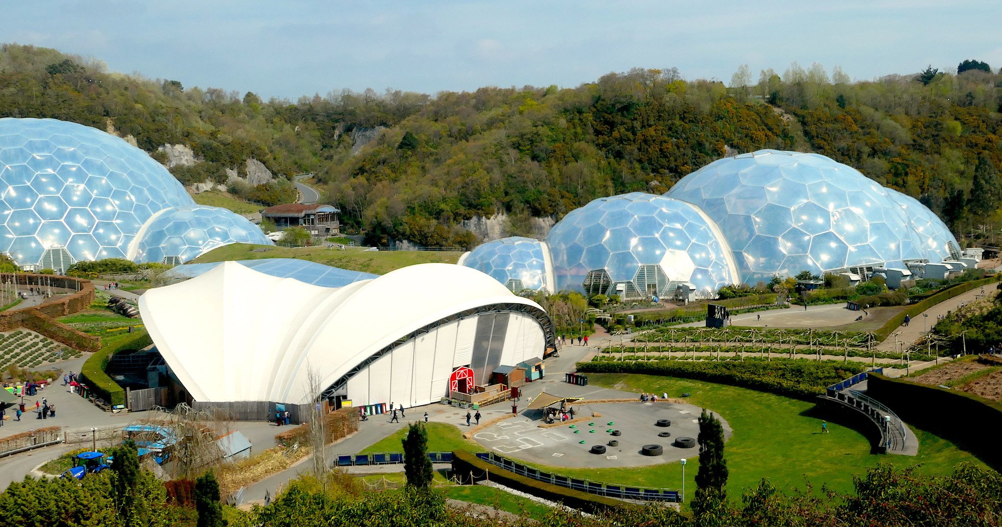 The Eden Project features huge greenhouses that are home to thousands of plant species.
