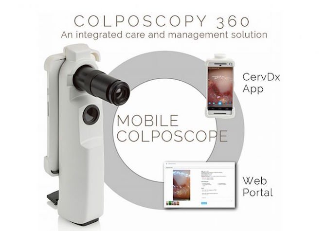 The smartphone device allows a nurse to take a detailed photograph of the cervix, a much less invasive procedure than a Pap smear.
