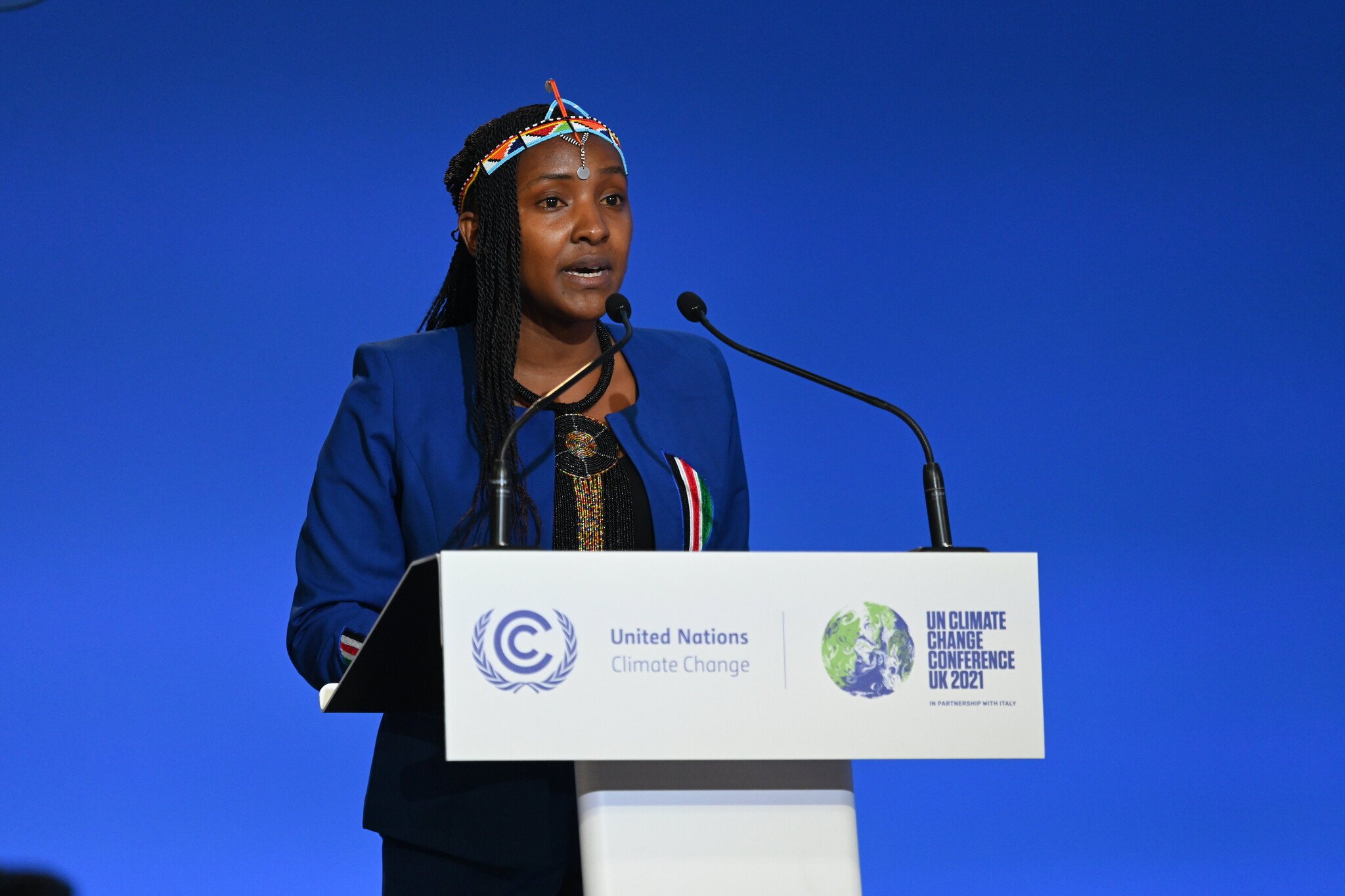 Kenyan climate activist Elizabeth Waathuti addresses delegates at the COP26 Climate Conference in Glasgow.