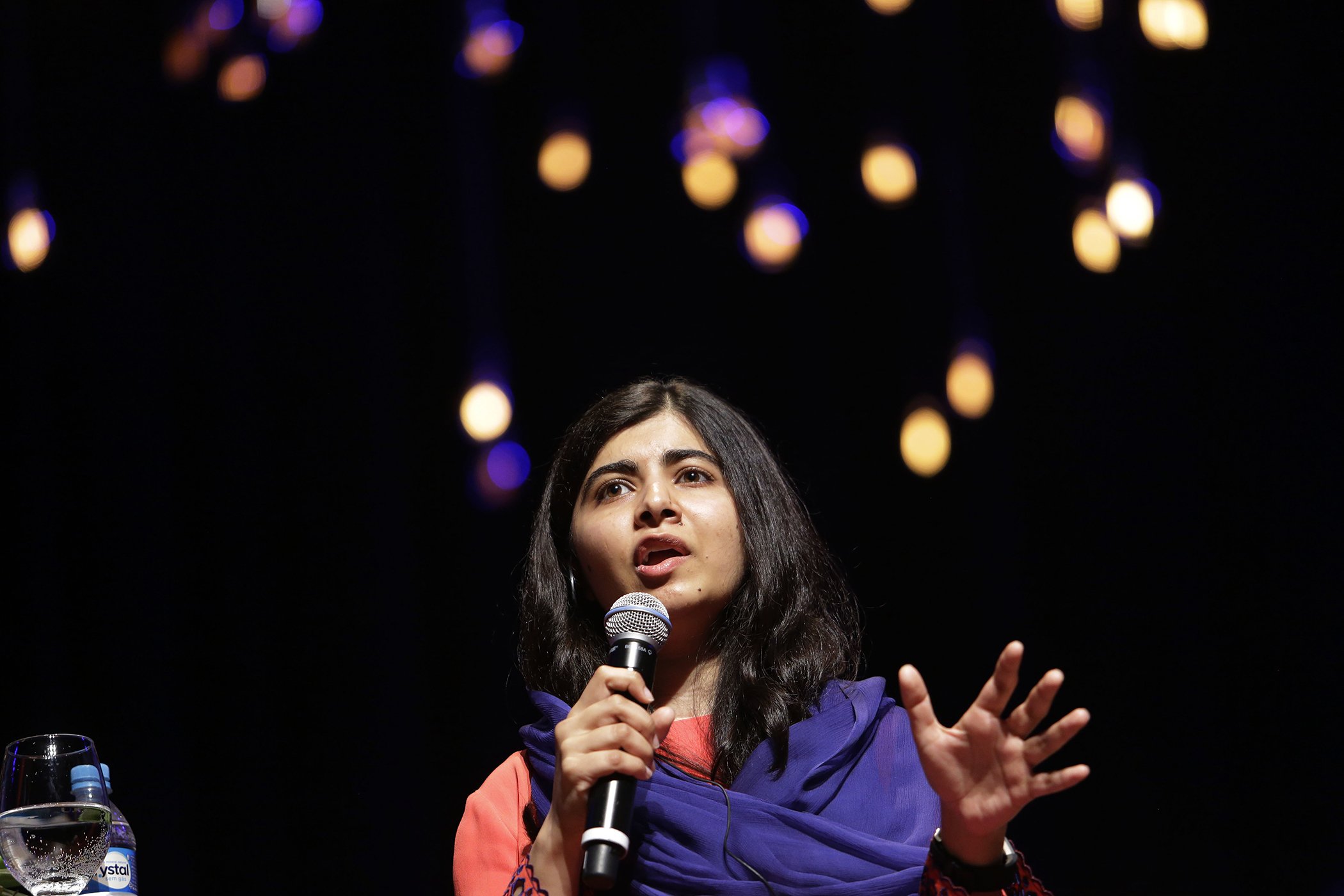 Pakistan's Nobel laureate Malala Yousafzai speaks during a meeting with women who campaign for education and children's and women's rights in Sao Paulo, Brazil, Monday, July 9, 2018.