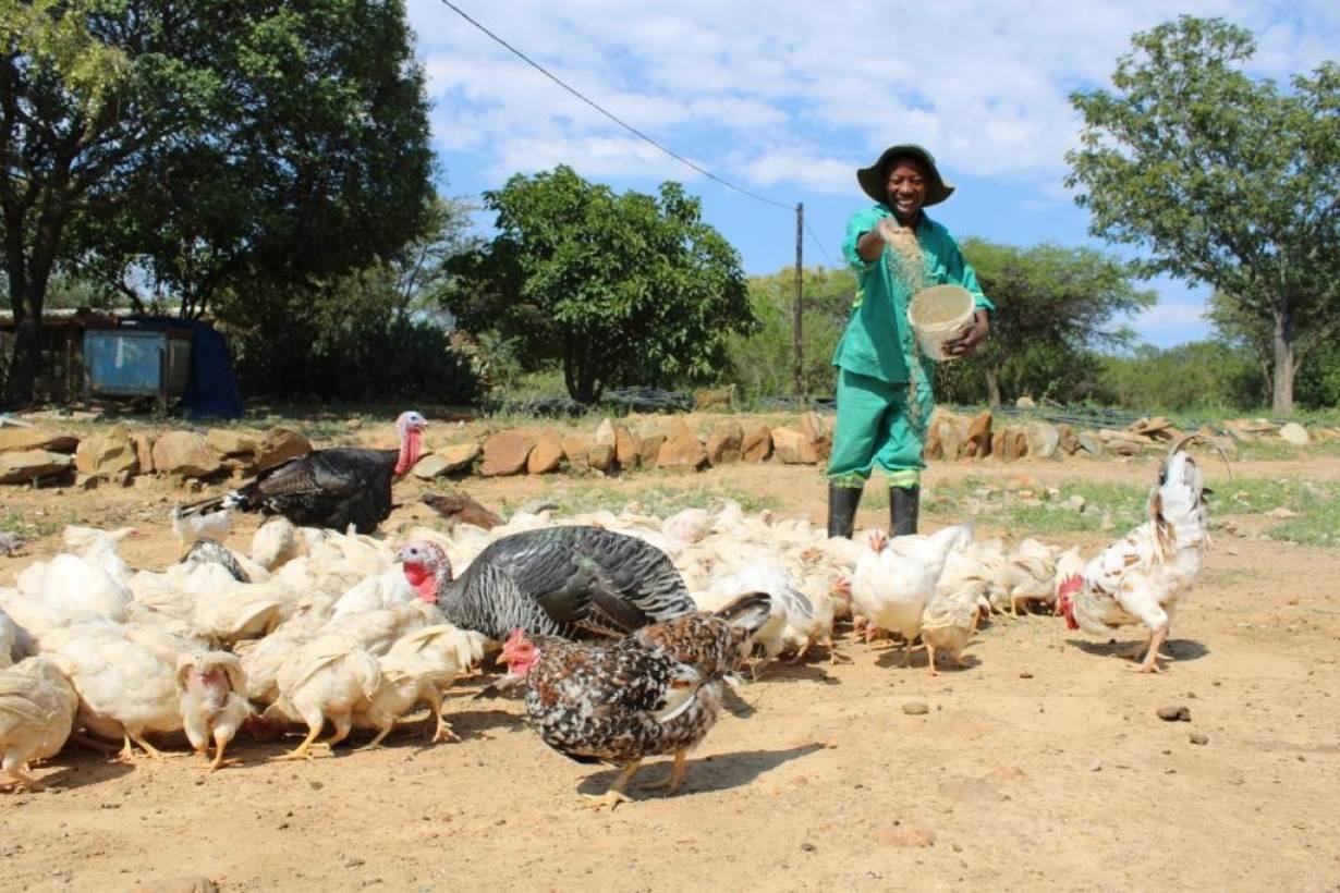 Prosper Chikwara, a young farmer in Zimbabwe, feeds his free-range chickens, February 25, 2019.