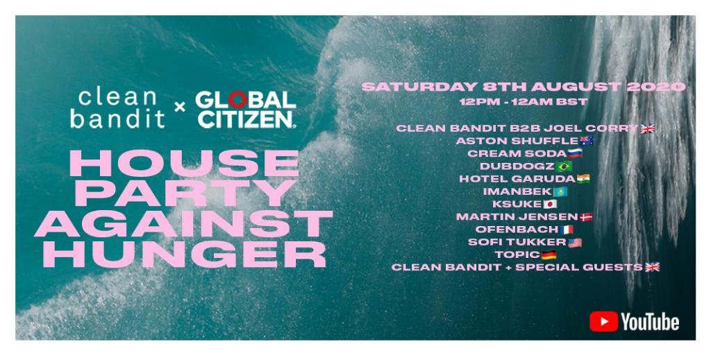 Clean Bandit commented, “we couldn't be more excited to partner with Global Citizen on House Party Against Hunger. It's never been more important to take action; to empower the world's most vulnerable people, especially those from rural and remote communities. Before the COVID-19 pandemic, 1 in 9 people were hungry or undernourished globally, with 132 million people approaching starvation. But the economic impacts of the virus means that could double to 265 million before the end of the year."