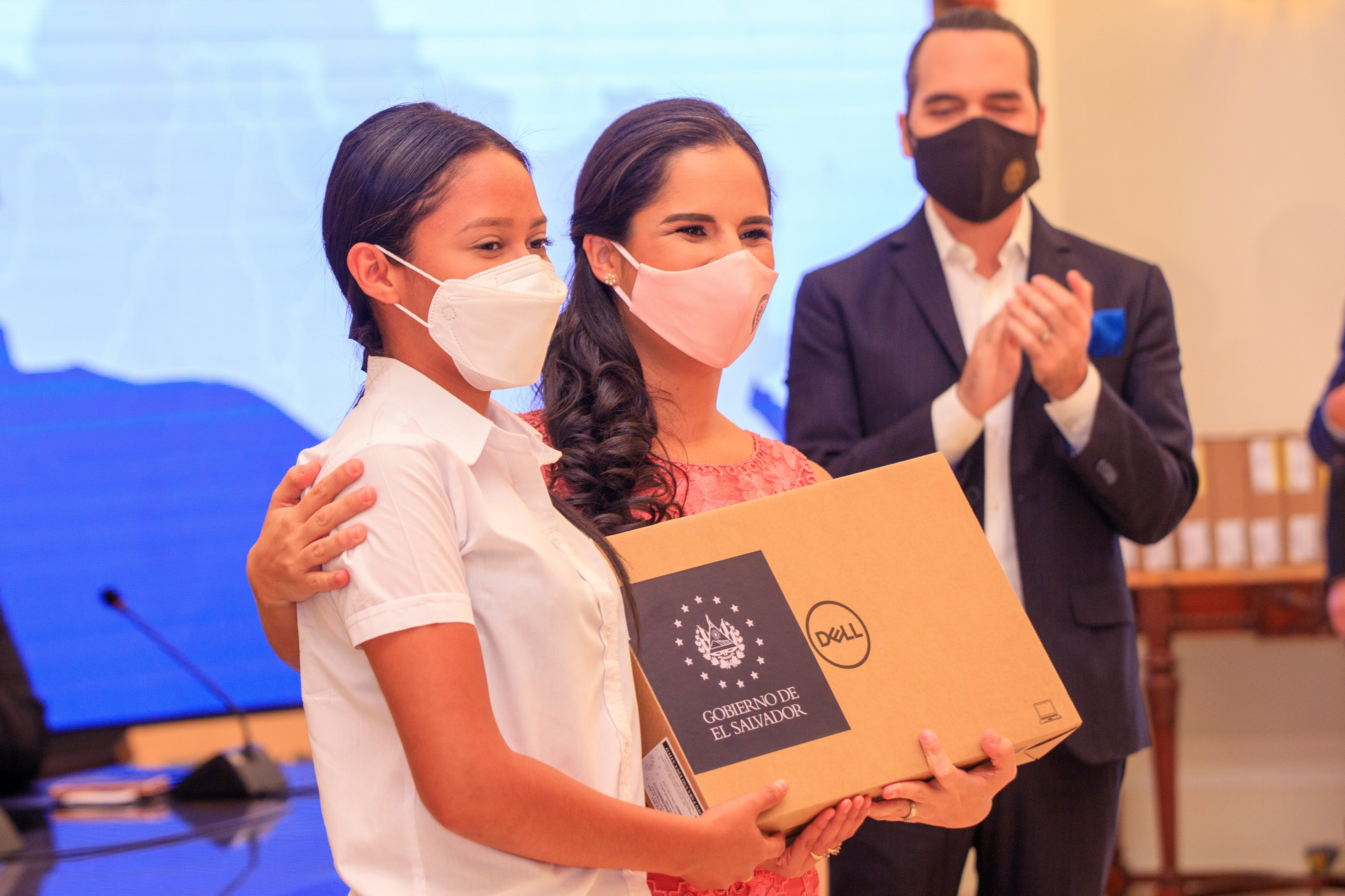 Bajo la coordinación del Despacho de la Primera Dama de la República, Gabriela de Bukele, y en trabajo conjunto con el Ministerio de Educación iniciaron la entrega de equipos tecnológicos para estudiantes y docentes del sector público.