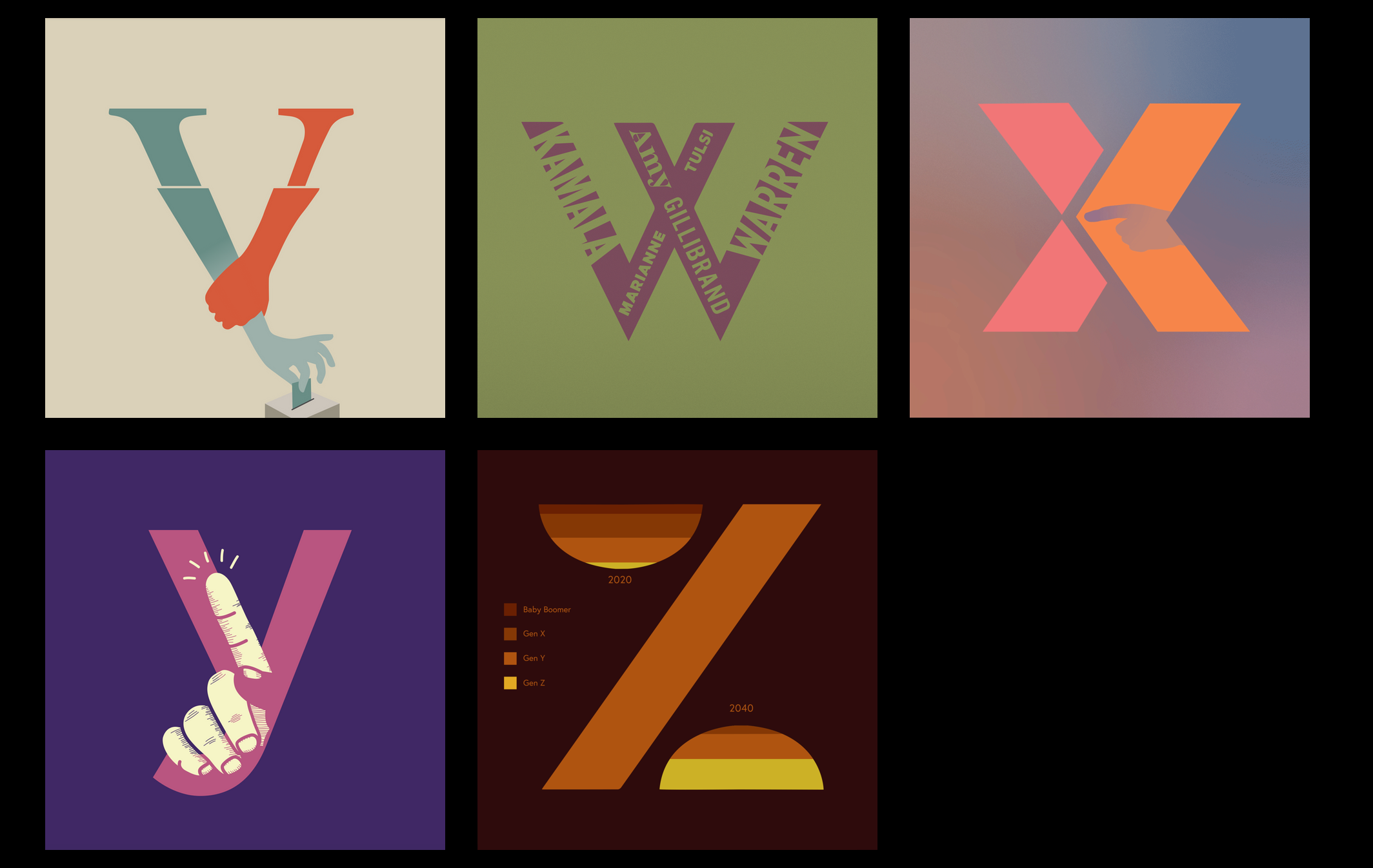 Xenofobia es representada con la letra “X," mientras que Generación Z es mencionado en la letra “Z.”