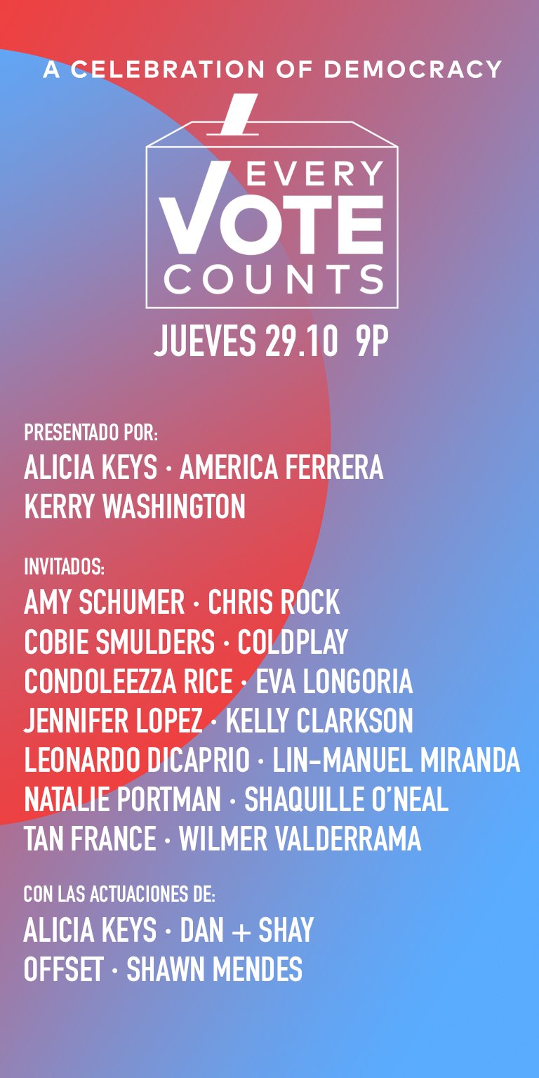 Mientras los estadounidenses de todo el mundo sintonizaban el programa especial Every Vote Counts: A Celebration of Democracy el jueves, los artistas Jennifer Lopez, Eva Longoria, Wilmer Valderrama y Salma Hayek Pinault se reunieron con votantes latinos para compartir un mensaje sobre la importancia del voto latino.