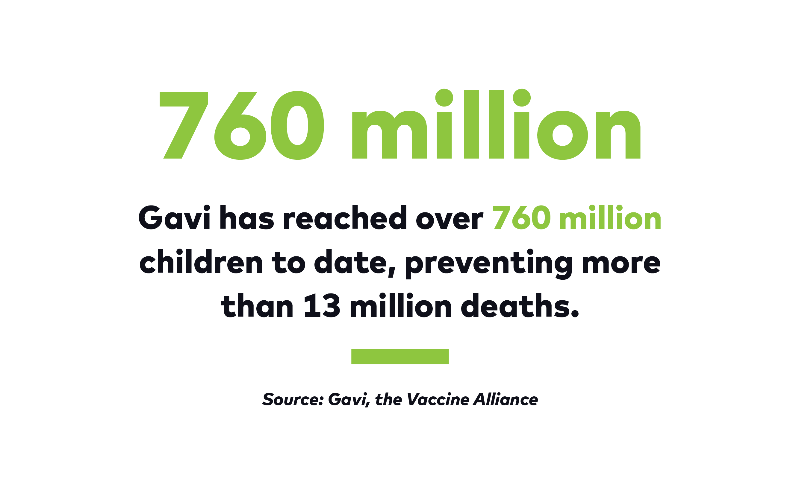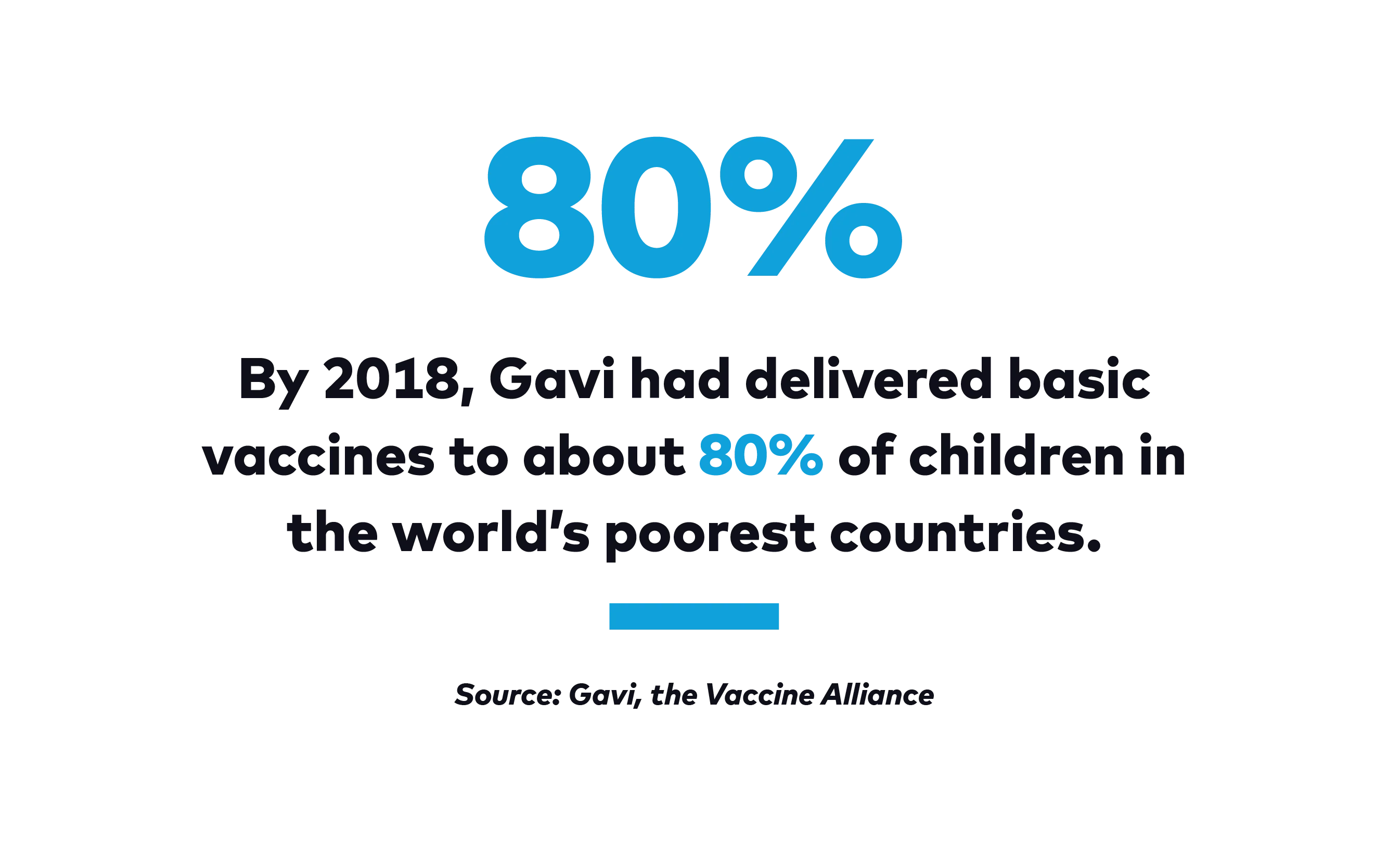 Para finales de 2018, Gavi había entregado vacunas básicas a cerca del 80% de los niños en los países más pobres del mundo. Desde que se creó en el año 2000, Gavi ha alcanzado a más de 760 millones de niños con vacunas y ha salvado más de 13 millones de vidas de enfermedades infecciosas devastadoras, como la polio, el sarampión, rotavirus, neumococo, virus del papiloma humano y muchas más. Todo esto fue posible gracias a los compromisos globales con la organización.