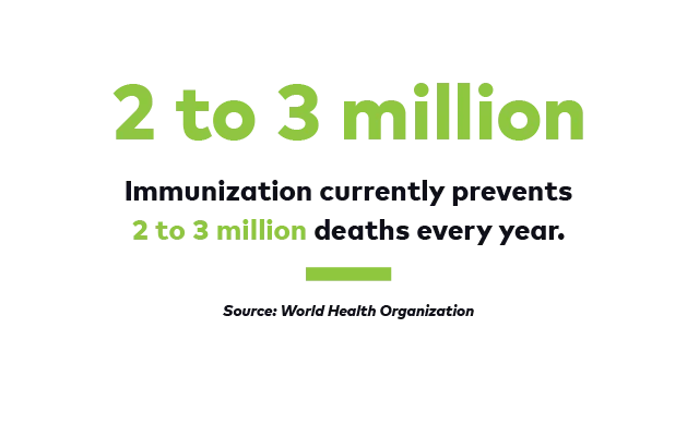 La inmunización se considera la mejor manera de alcanzar la buena salud para las personas más pobres porque permite combatir enfermedades prevenibles y evitar muertes innecesarias de forma segura y eficaz. Actualmente, la inmunización previene entre 2 y 3 millones de muertes cada año, según la Organización Mundial de la Salud (OMS).