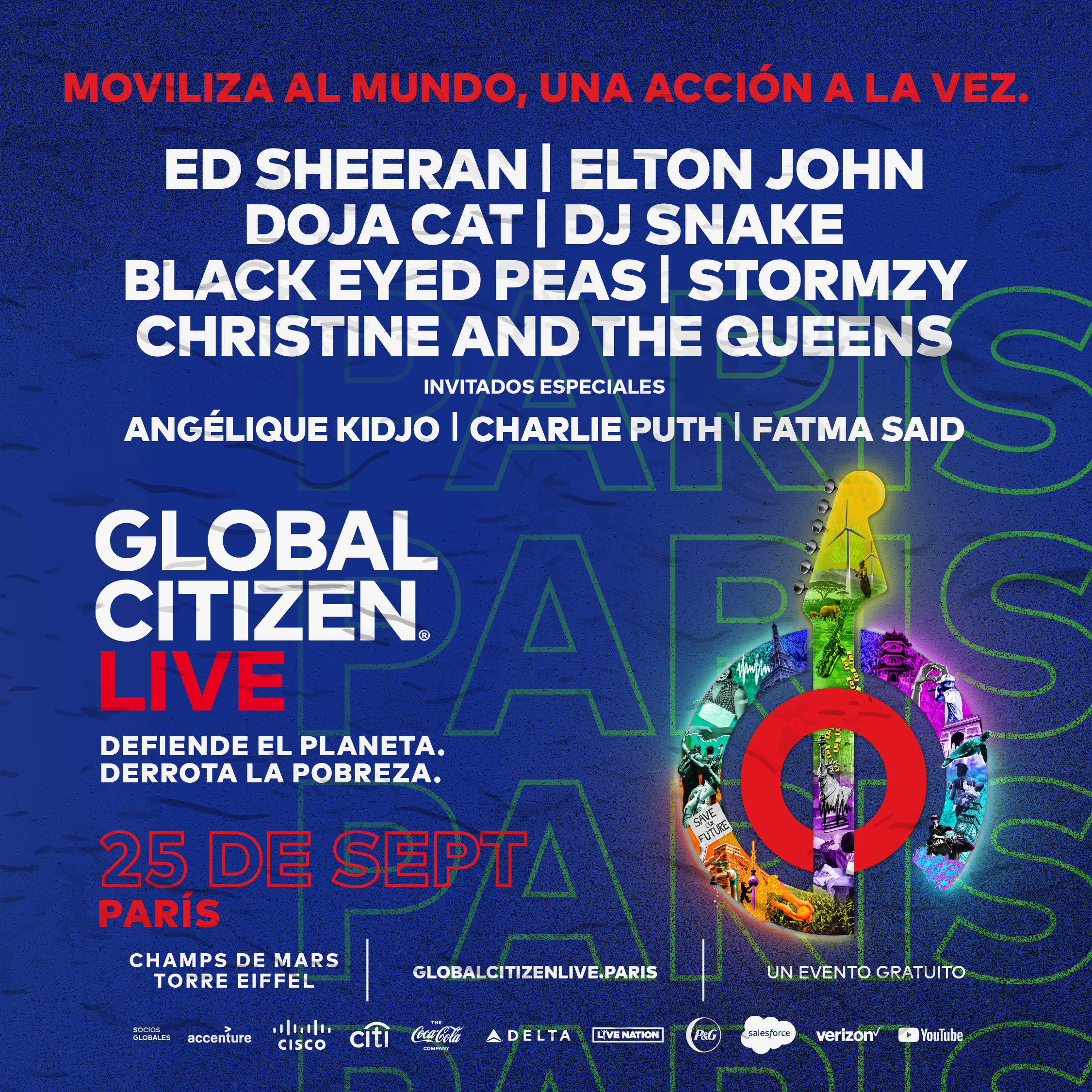 En el Global Citizen Live de París, en los Campos de Marte, actuarán Ed Sheeran, Doja Cat, DJ Snake, Black Eyed Peas y Christine and the Queens, Sir Elton John, Stormzy, y los invitados especiales Charlie Puth y Fatma Said Tiwa Savage, con la participación especial de Angélique Kidjo.