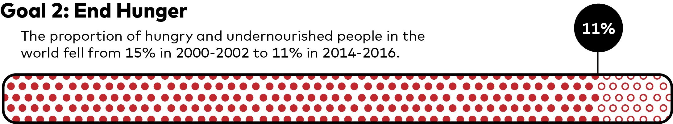 Aunque la calidad de vida ha mejorado para muchas personas en todo el mundo y las personas generalmente llevan vidas más saludables, el cambio climático y los conflictos han obstaculizado el progreso para ponerle fin al hambre y el desplazamiento forzado.