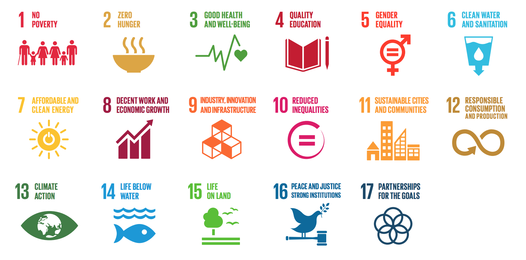 Los 17 Objetivos Globales de Desarrollo, que se basan en los ocho Objetivos de Desarrollo del Milenio establecidos en 2000 para su cumplimiento en 2015, tienen como objetivo abordar la pobreza desde la raíz. Los objetivos van desde ponerle fin al hambre y lograr la seguridad alimentaria, hasta promover sociedades pacíficas e inclusivas.