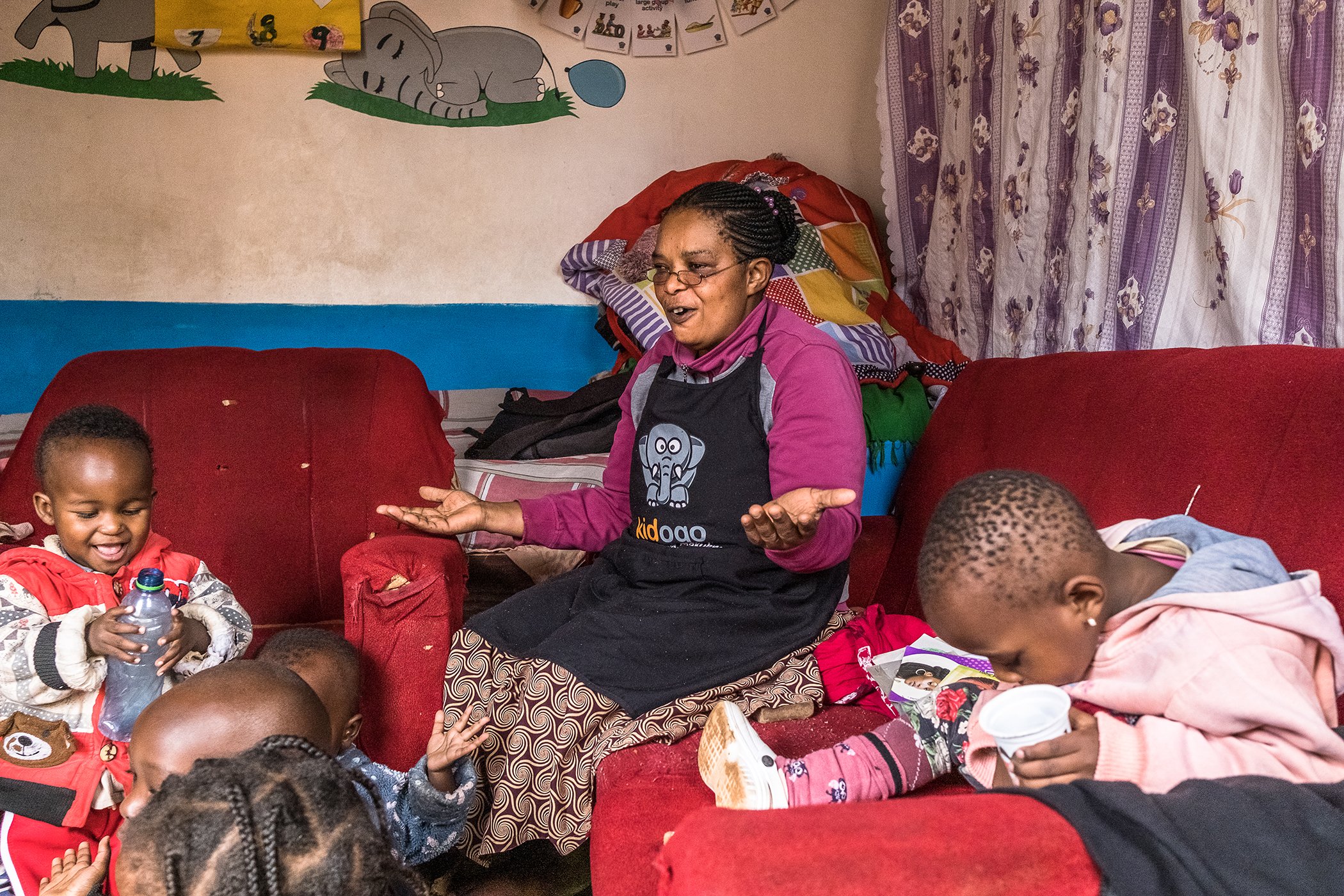 Abibu dijo que, aunque se apoyó en su experiencia como maestra para enseñar a los niños a contar y cantar canciones con ellos, estaba más familiarizada con el cuidado de infantes entre 3 y 4 años.