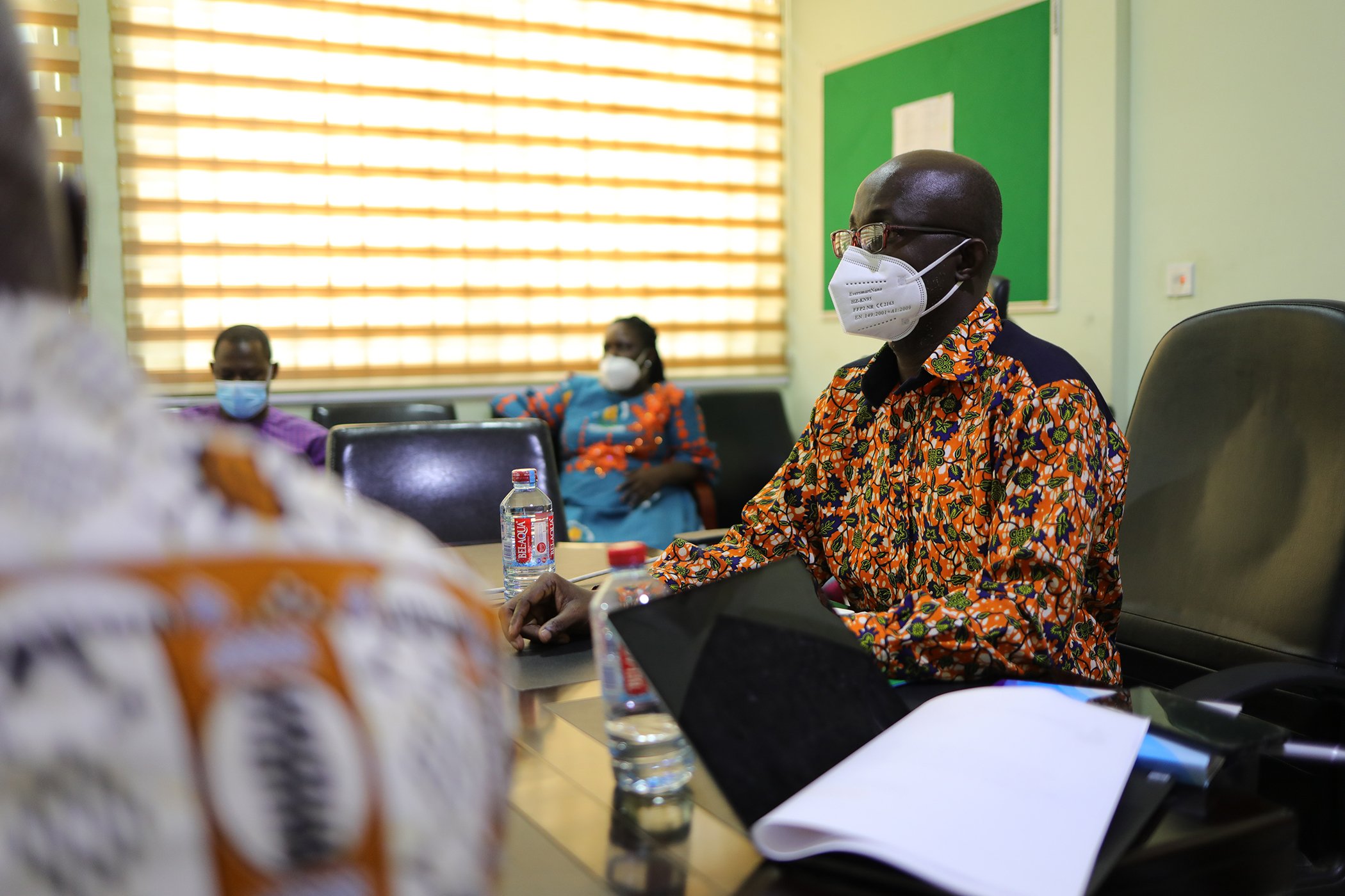 Dr. Kwame Amponsa-Achiano at a meeting with colleagues at the Expanded Program on Immunization, Ghana Health Service, Accra, Ghana on July 22, 2022.