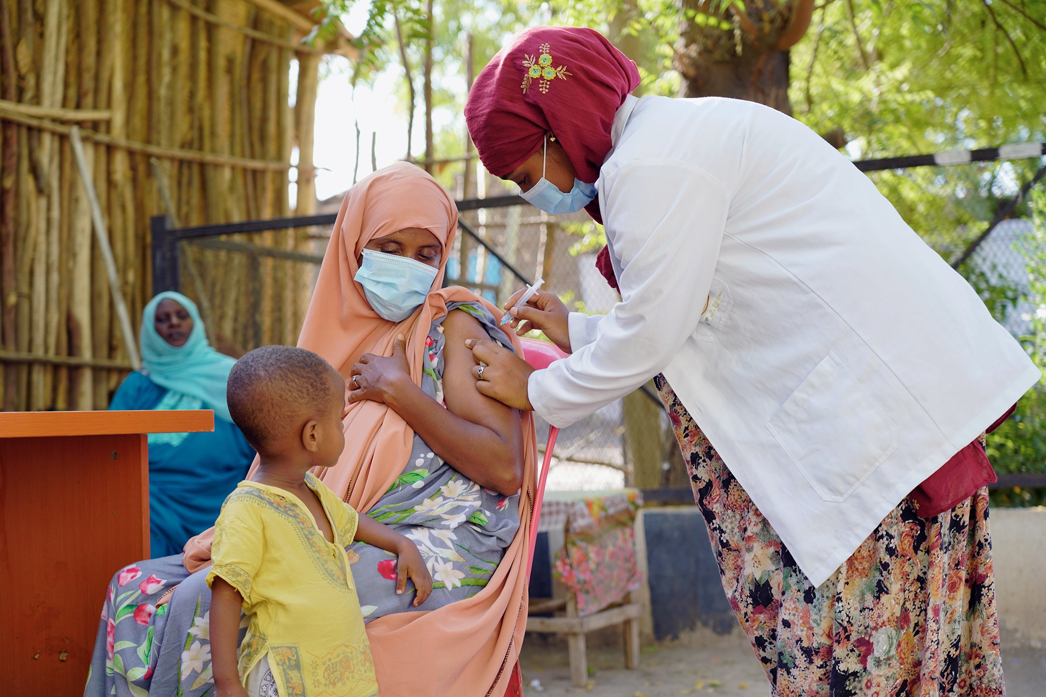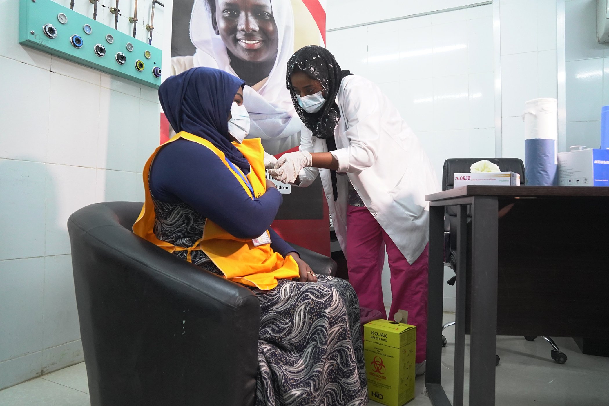 Health care workers are vaccinated against COVID-19 in Sudan. The vaccines were delivered with UNICEF’s support through COVAX and the first phase of the campaign will target health care workers and persons 45 years or older with chronic illnesses.