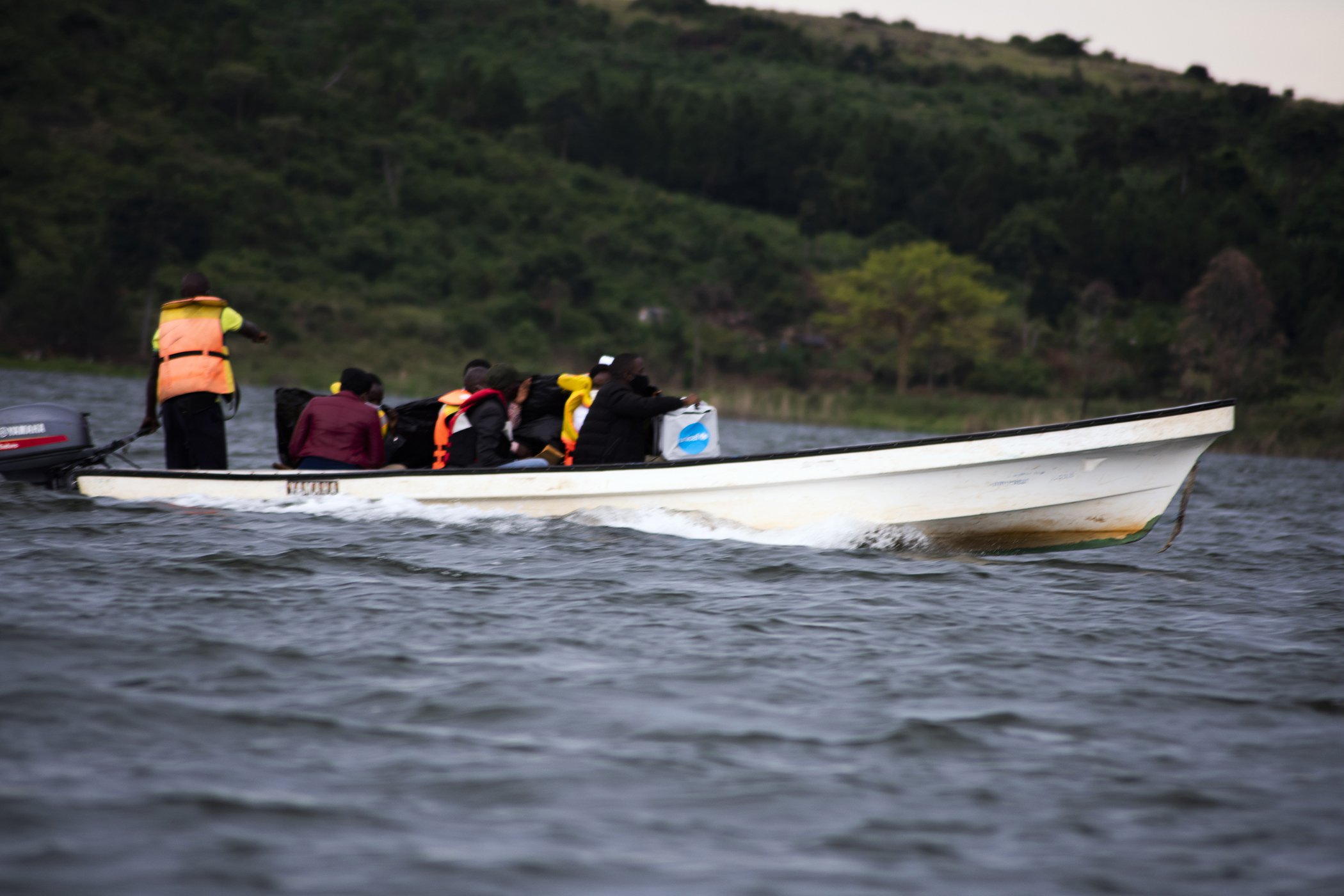 UNICEF and Buvuma District Health teams take a 30-minute boat road to Namatale Health Centre III, Namatale Island, Buvuma District on March 22, 2021 for a COVID-19 vaccination outreach. Health workers must transverse the 52 islands in the area by boats. Uganda received the first consignment of 864,000 doses of AstraZeneca COVID-19 vaccines on March 5, 2021. The vaccines were procured by the COVAX Facility. UNICEF is handling the procurement and delivery of the vaccines and related supplies on behalf of the COVAX Facility.