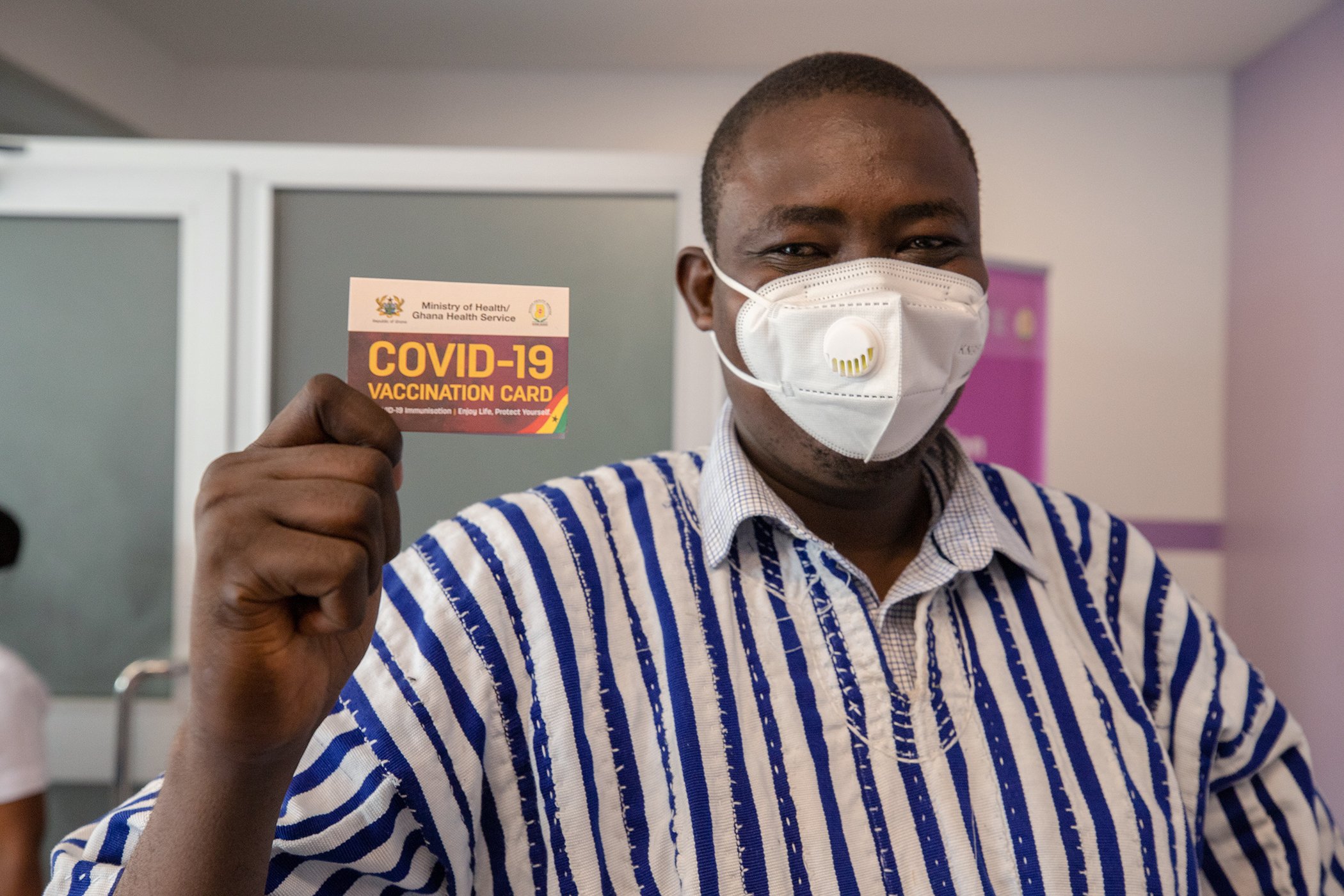 Dr. Emmanuel Addipa-Adapoesho shows a vaccination card after receiving the AstraZeneca/Oxford COVID-19 vaccine in March 2021. "As a physician, we have taken an oath to protect and save lives, so I am ready for this," said Dr. Addipa-Adapoe.