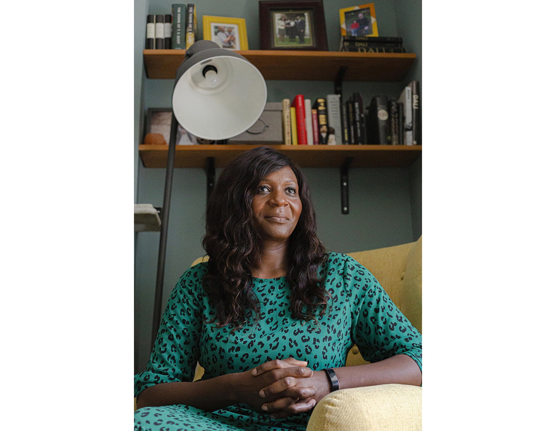 Chine McDonald est une écrivaine, présentatrice et responsable de la collecte de fonds et de l'engagement au sein de l'organisation Christian Aid. Elle est assise chez elle le 13 juin 2021.