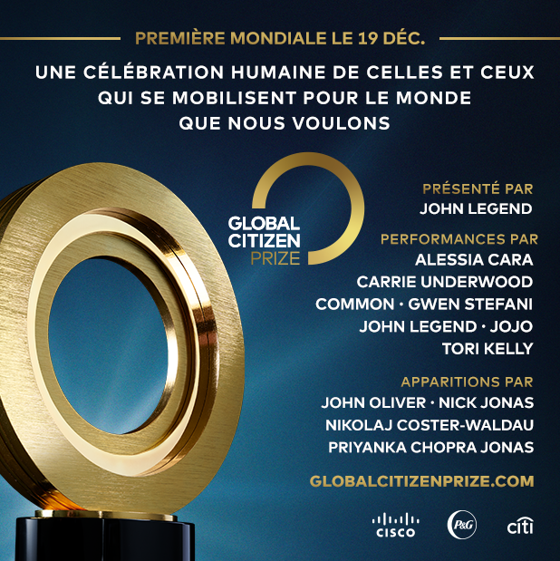Vous pouvez en savoir plus sur le Global Citizen Prize, qui sera diffusé dans le monde entier à partir du 19 décembre, ici. Dans les jours à venir, de nouvelles annonces sont prévues, alors n'oubliez pas de suivre @GlblCtzn sur Facebook, Twitter et Instagram pour rester au courant des dernières nouvelles.