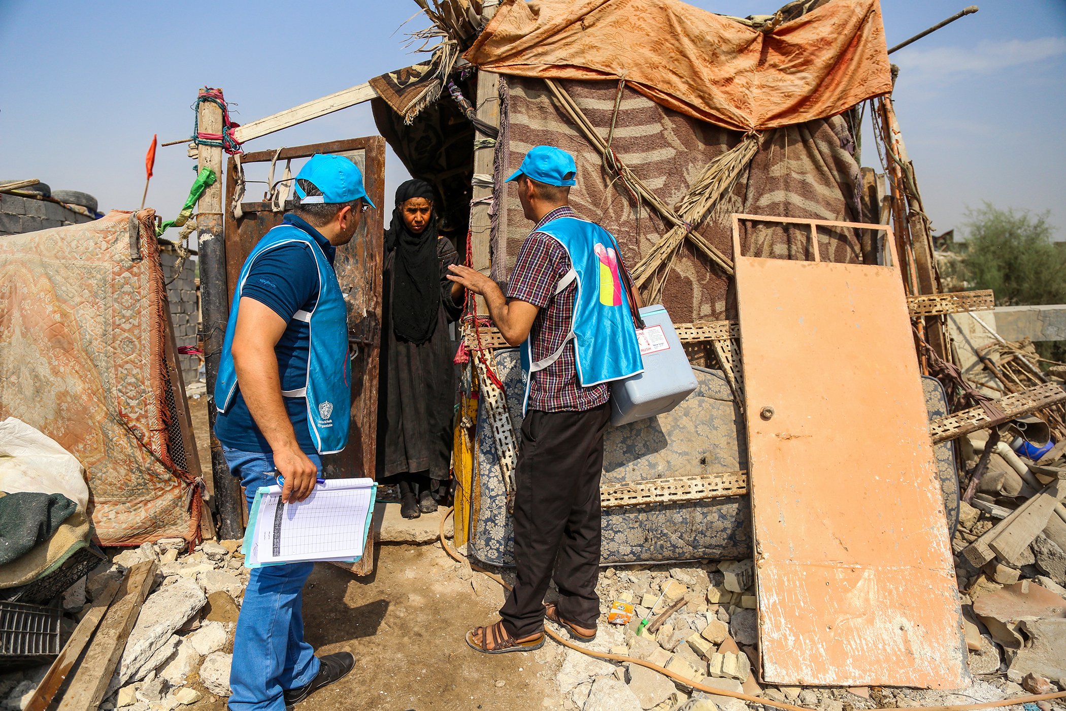 À Sadr City, à Bagdad, des travailleurs de la santé amorcent une campagne de vaccination de cinq jours sous le thème « Deux gouttes qui sauvent des vies », dans le but de rejoindre 5,8 millions d’enfants iraqiens lors de la Journée mondiale contre la polio en 2016. En mai 2015, l’Iraq a été retiré de la liste des pays aux prises avec la polio grâce au soutien constant que l’OMS et l’UNICEF ont apporté aux ministères de la Santé fédéral et du Kurdistan.
