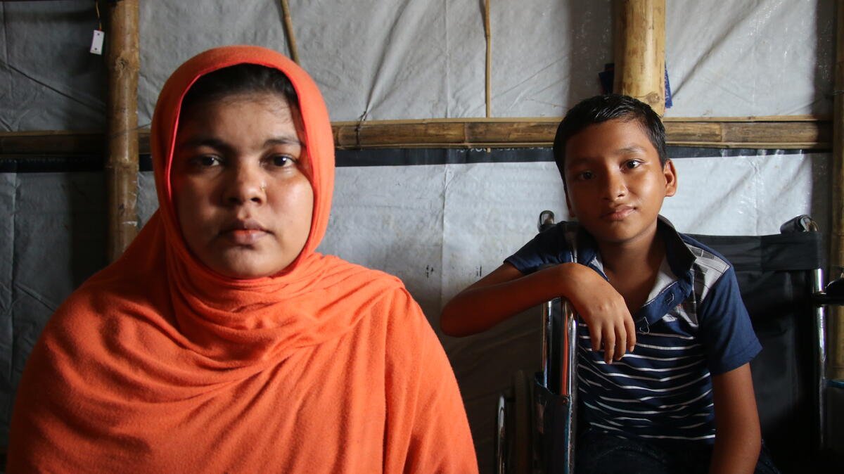 Banna*, 11, and his mother Rubaida*, 30, at their home in a Rohingya refugee camp in Cox’s Bazar that has been rebuilt five times in the last four years.