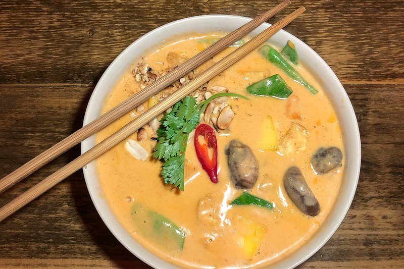 Cette recette facile et rapide se prépare avec des ingrédients que vous avez sans doute déjà dans vos placards. Si vous n’êtes pas adepte de nourriture épicée, vous pouvez aisément l’ajuster et elle n’en sera pas moins délicieuse. De même, si vous êtes allergique aux cacahuètes, vous pouvez utiliser du beurre d’amande comme substitut et oublier les cacahuètes hachées.