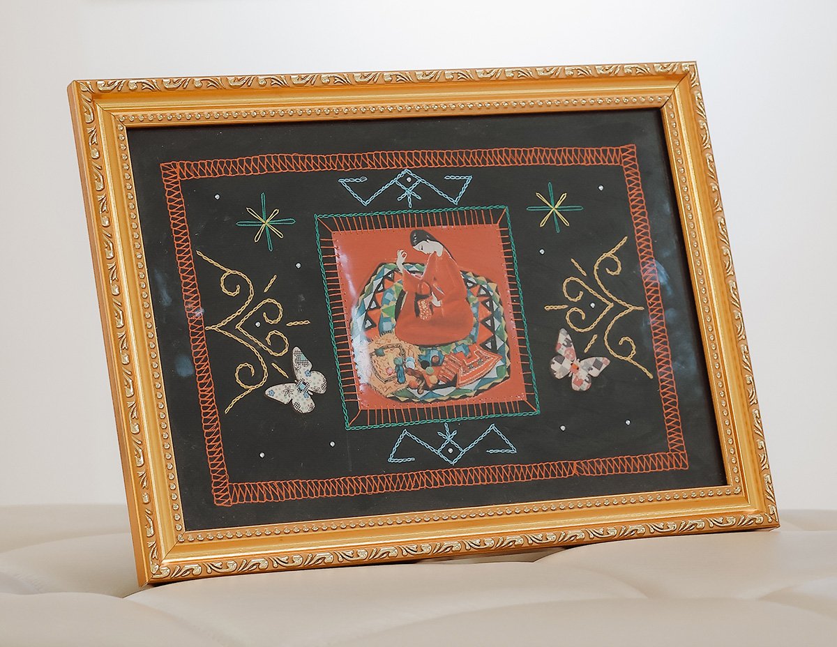 For her spotlight as a Global Citizen emerging creative, Erejepbaeva created an embroidery piece which she said "represents the resilience of a Karakalpak woman — a mother, sister, and daughter, who are diligent and hard-working.”